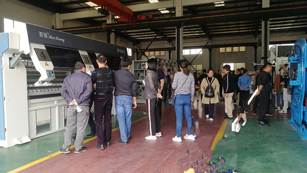 此次,上海百強洗滌設備制造有限公司由于特殊原因沒有在洗滌展設立專門的展位,而是以一種特殊的模式參與中國洗滌展。這種方式就是以廠為展,在廠區內設立設備展位,如130kg傾斜式洗脫機、節能烘干機、高速燙平機、高速折疊機、四工位展布機等等,還有一臺燃氣燙平機(作為本次展會的隱藏設備)。