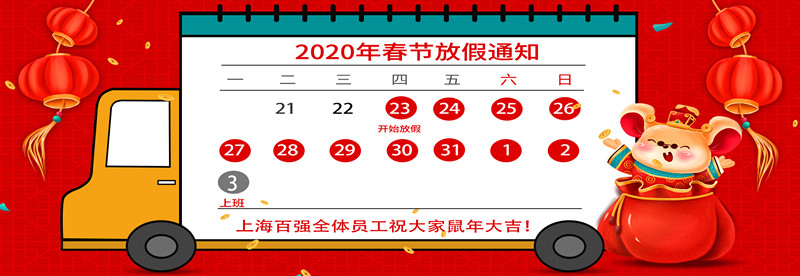 百強洗滌設備放假通知,現將2020年春節(jié)放假安排通知如下:1月23日至2月2日放假調休,共10天。2月3日(星期一)上班。節(jié)假日期間,公司除值班人員按照值班表做好值班工作之外,其他人員休息。