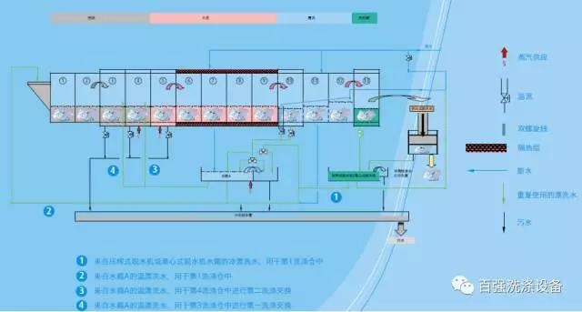1、設備采用了水循環和過濾技術,極大降低了水消耗和蒸汽 消耗:可節水70%、節電60%,人工節省80%、節約洗滌劑耗量30%、節約熱 能50%。